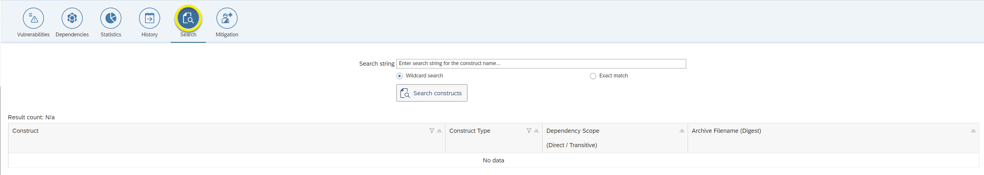 Objective of view: Search for constructs in application dependencies.